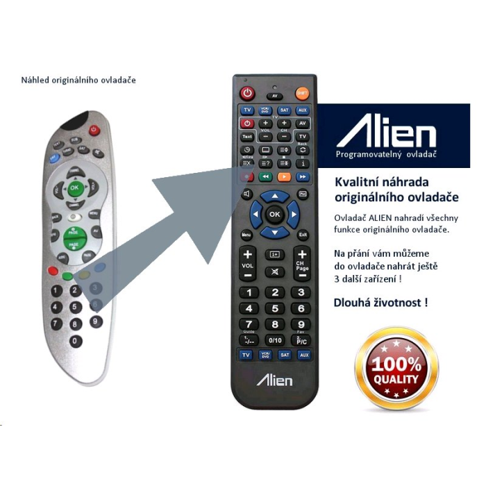 Ovladač je naprogramován na vašem zařízení. ALIEN nahrazuje všechny funkce originálního ovladače.