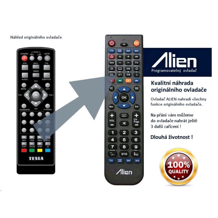 Ovladač je naprogramován na vašem zařízení. ALIEN nahrazuje všechny funkce originálního ovladače.