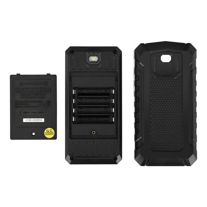 Multimetr je napájen čtyřmi standardními bateriemi. K dispozici je svítilna a funkce automatického vypnutí, která vám pomůže využít kapacity baterií.