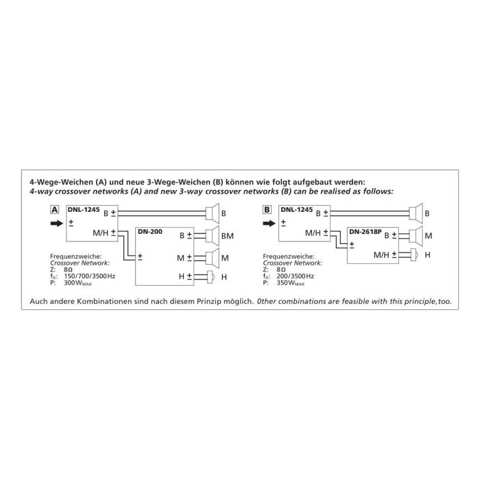 Crossover frequency: 3 kHz (B = 4 Ω: 1.7 kHz)
