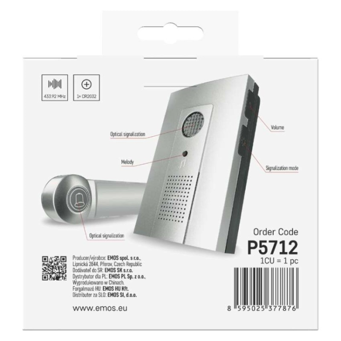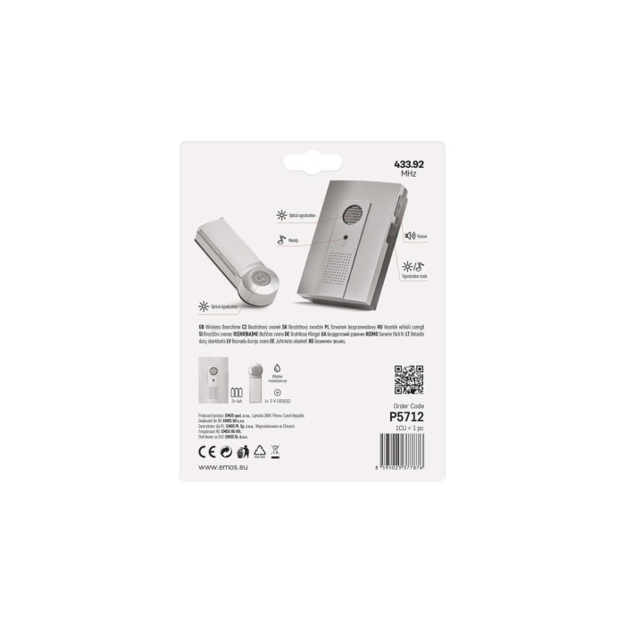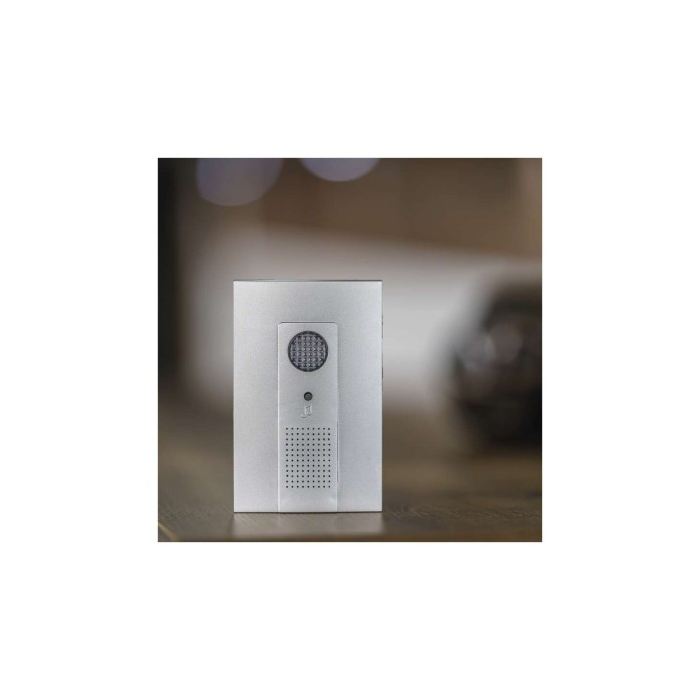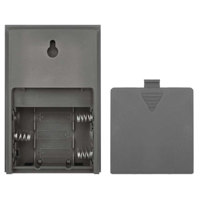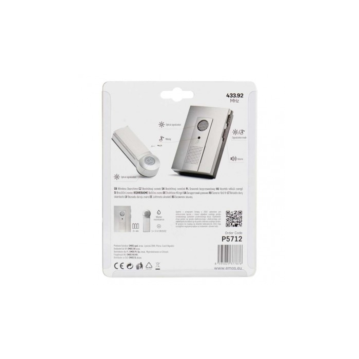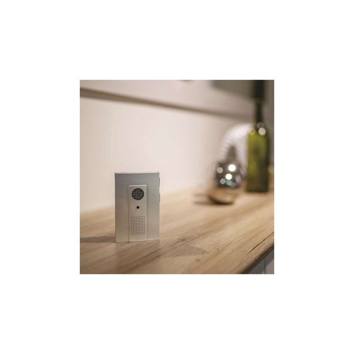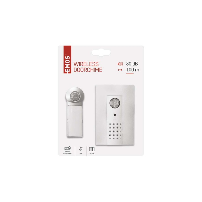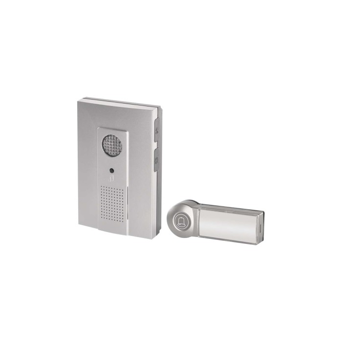 Bezdrátový bateriový domovní zvonek s dosahem až 100m. Nastavitelná hlasitost vyzvánění, možnost nastavit 3 různé druhy provozu: pouze zvuková signalizace, pouze světelná signalizace, zvuková a světelná signalizace.