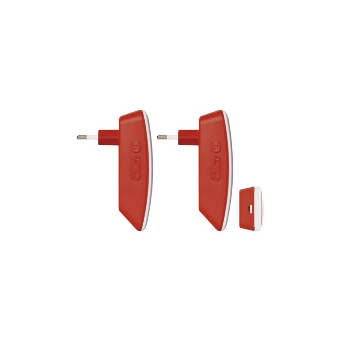Bezdrátový domovní zvonek napájený ze sítě 230V s regulací hlasitosti. Tlačítko je bezbateriové. Dosah až 150m ve volném prostoru. Sada obsahuje 2 zvonky a 1 tlačítko.