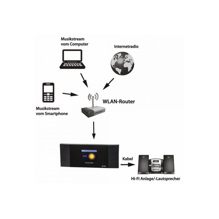 Adaptér internetového rádia WLAN s DLNA, DAB+, FM a bluetooth