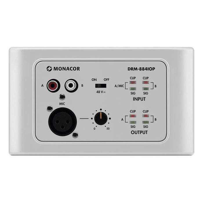 Description: wall module Type: remote control of one zone Colour: white Material: plastic Suitable for: DRM-884 Power supply: via DRM-884 Admiss. ambient temp.: 0-40 °C Dimensions: 145 x 85 x 53 mm Weight: 293 g Connections: 1 x XLR (microphone), 1 x RCA L/R (line), 1 x RJ45 Other features: 48 V phantom power Packing unit: 1 Packaging dimensions (W x H x L): 0.125 x 0.095 x 0.185 m Gross weight: 0.396 kg Net weight: 0.293 kg