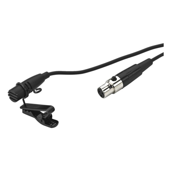 Description: tie clip microphone Transmission method: cable Polar pattern: cardioid System: electret Audio frequency range: 70-15,000 Hz Nominal impedance: 1.5 kΩ Sensitivity: 7 mV/Pa Max. sound pressure: 120 dB Power supply: via power supply adapter Admiss. ambient temp.: 0-40 °C Dimensions: Ø 7 mm x 22 mm Weight: 4 g Cable: 1.2 m Connection: 3-pole mini XLR Packaging dimensions (W x H x L): 0.035 x 0.14 x 0.065 m Gross weight: 0.045 kg Net weight: 0.02 kg