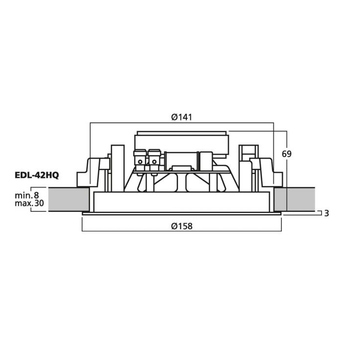 Impedance (Z): 8 Ω Transmission technology: 100 V or low-impedance Frequency range: 70-20,000 Hz Resonant frequency (fs): 70 Hz Power rating (RMS): 15 W (8 Ω) 8/4/2/1 W (100 V) Peak music power output (MAX): 30 W SPL: 85 dB/W/m Max. rated SPL: 96 dB Mounting cutout: Ø 141 mm Mounting depth: 70 mm Dimensions: Ø 158 mm x 72 mm Outside diameter: Ø 158 mm Width: Ø 158 mm Height: Ø 158 mm Depth: 70 mm Colour: white Admiss. ambient temp.: 0-40 °C Weight: 0.930 kg Packing unit: 1 Type of speaker: 100 Packaging dimensions (W x H x L): 0.174 x 0.085 x 0.174 m Gross weight: 1.08 kg Net weight: 0.945 kg