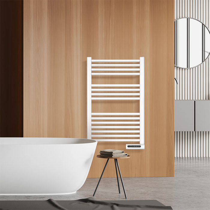 Nástěnný elektrický koupelnový radiátor se zabudovanou elektrickou topnou tyčí s příkonem 500W. Naplněn speciálním topným olejem (s bodem tuhnutí do - 5 °C). Dotykový ovládací panel s LED displejem.