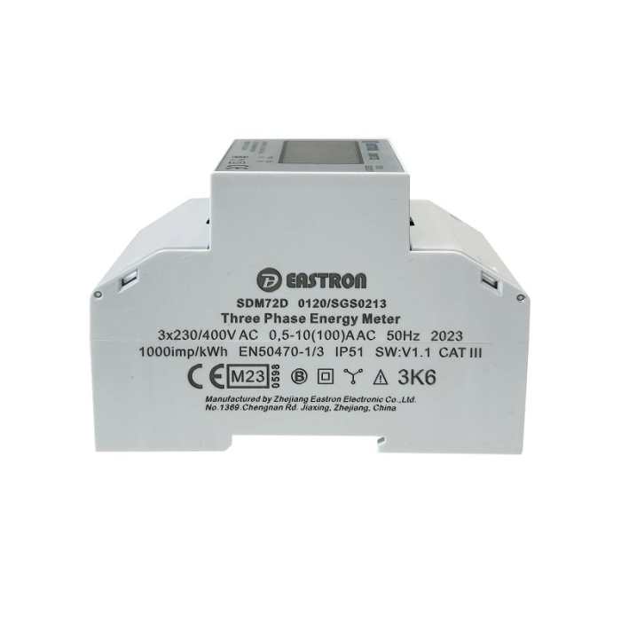 VCX EASTRON SDM72 D Třífázový, jednosazbový elektroměr na DIN lištu s MID certifikátem. Ke kontrole a monitorování spotřeby elektrické energie pomocí přímého měření s třídou přesnosti 1.