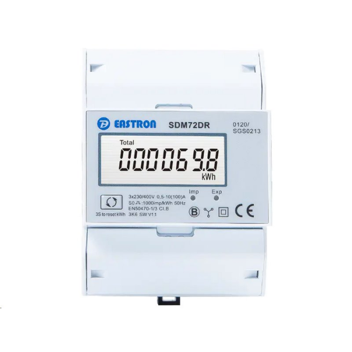 VCX EASTRON SDM72 DR Třífázový, jednosazbový elektroměr na DIN lištu s MID certifikátem. Možnost RESETU spotřeby energie. Ke kontrole a monitorování spotřeby elektrické energie pomocí přímého měření s třídou přesnosti 1.