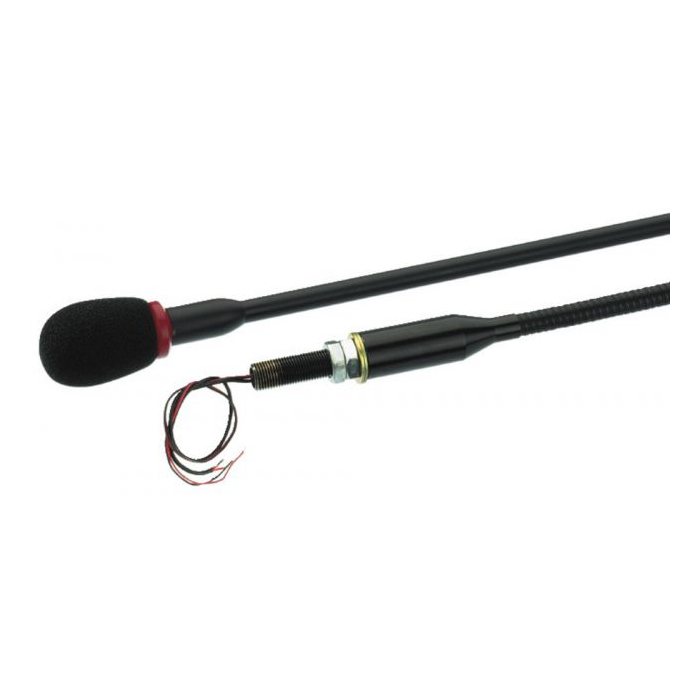 Description: gooseneck microphone Transmission method: cable Polar pattern: cardioid System: electret Audio frequency range: 100-16,000 Hz Nominal impedance: 1 kΩ Sensitivity: 4 mV/Pa Power supply: DC 3-9 V, external via optional power supply Admiss. ambient temp.: 0-40 °C Dimensions: Ø 13/19 mm x 450 mm Weight: 175 g Connection: open cable ends Packaging dimensions (W x H x L): 0.02 x 0.02 x 0.475 m Gross weight: 0.22 kg Net weight: 0.175 kg
