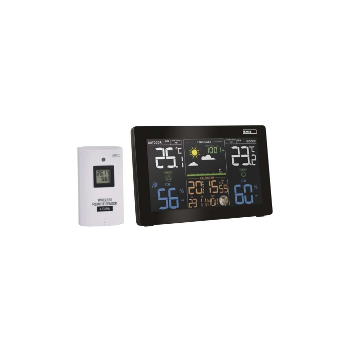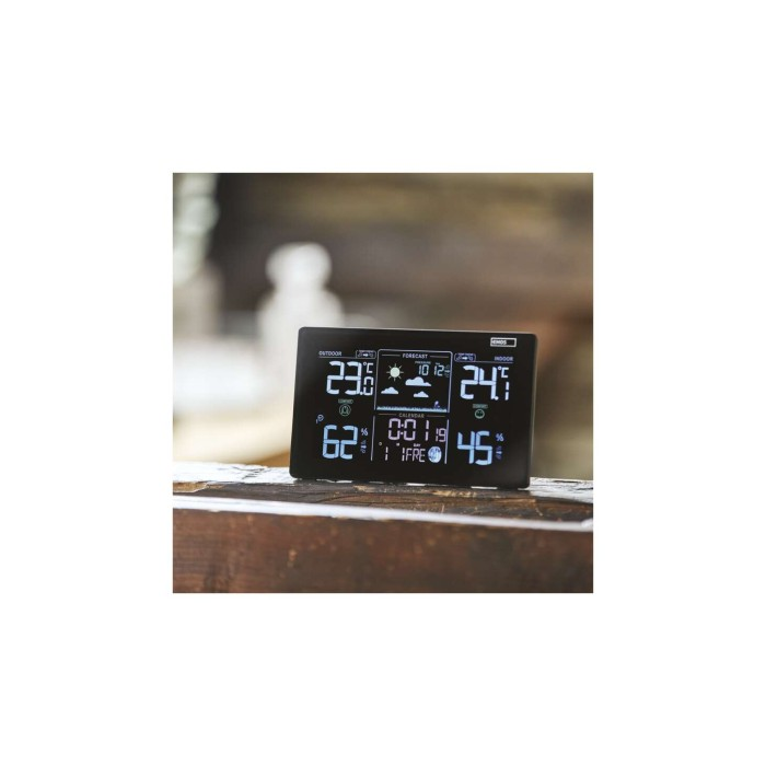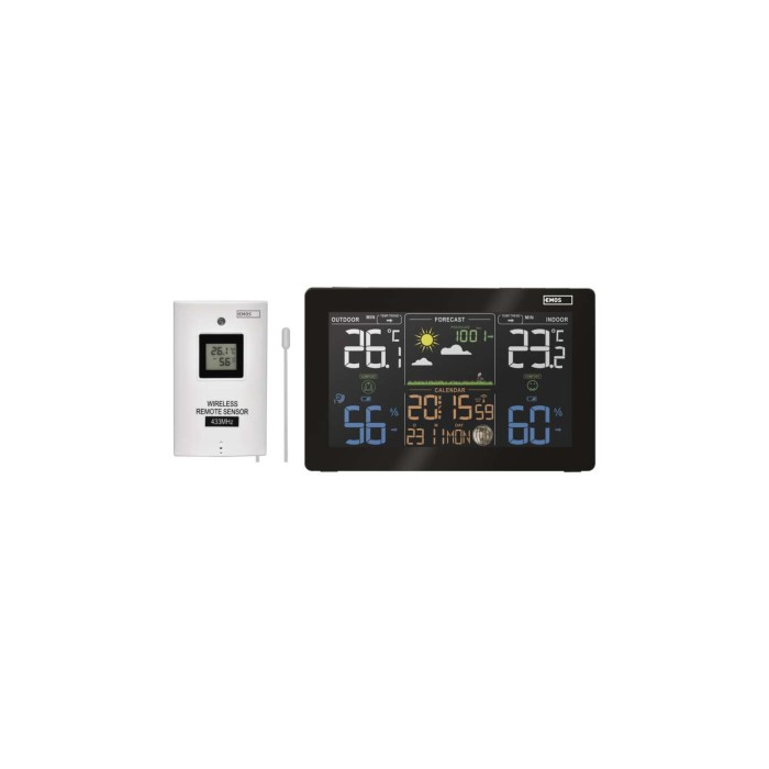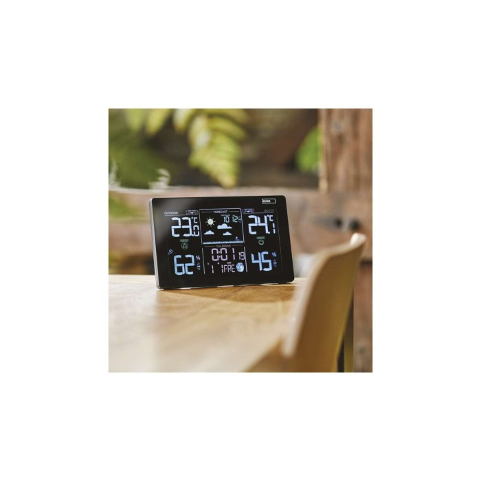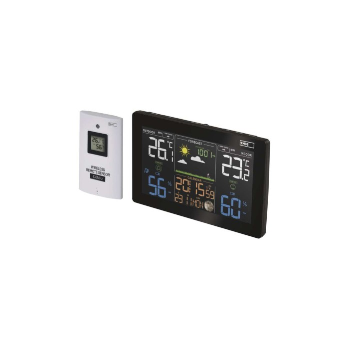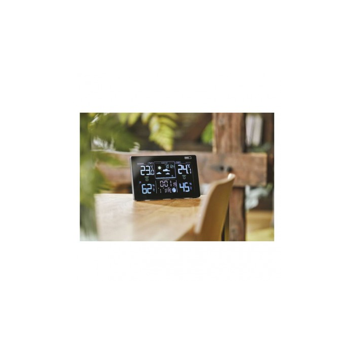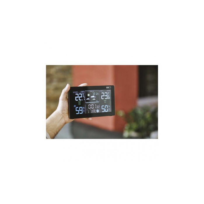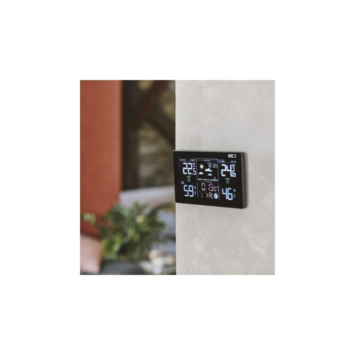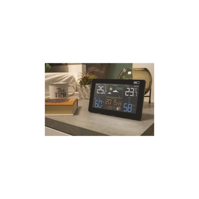 Meteostanice s barevným VA displejem. Přehledné rozložení údajů, tři úrovně intenzity podsvícení, tři animované úrovně teploty.