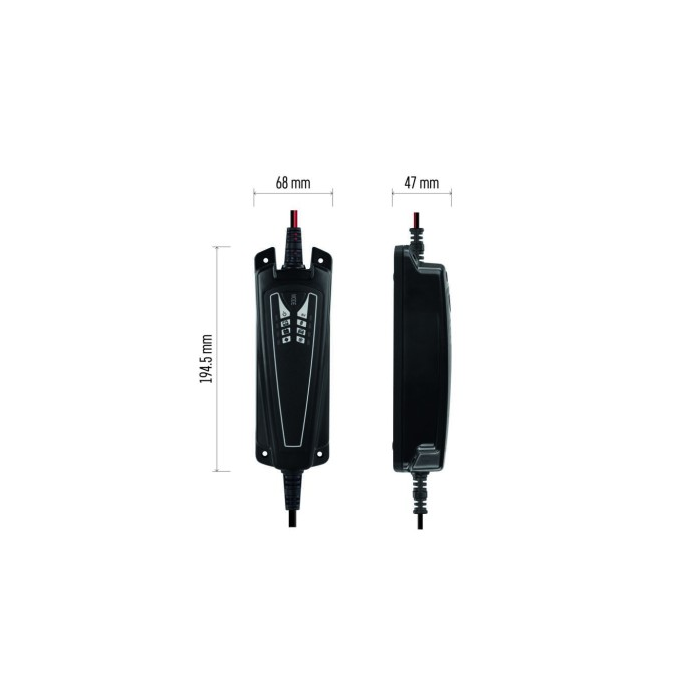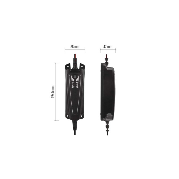 Inteligentní nabíječka je určená pro automobily, motocykly, záložní akumulátory. Nabíjí olověné aku WET (kyselinové), MF (bezúdržbové), záložní akumulátory VRLA, AGM i GEL.