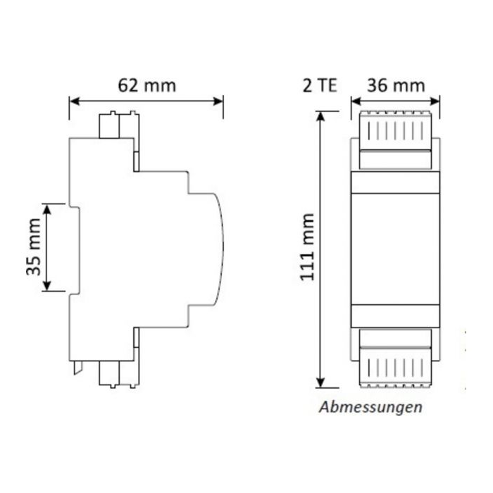 - For mounting onto DIN rails according to DIN EN 60529, 2 HP