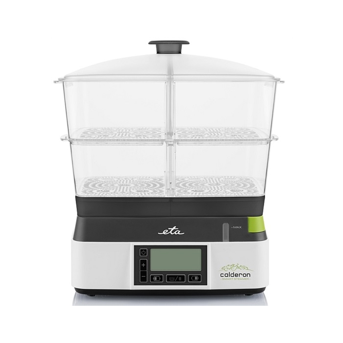 PŘÍKON: 1800 W, 2 transparentní nádoby, Kapacita nádob 11 l, Miska na vaření rýže, Vaření vajec, Ukazatel hladiny vody, Doplňování vody z vnějšku, LCD displej, 6 programů, Časovač., Funkce udržování teploty, Duální zóna vaření, Automatické vypnutí, Odkapní miska, Zvuková signalizace, Délka kabelu 1m