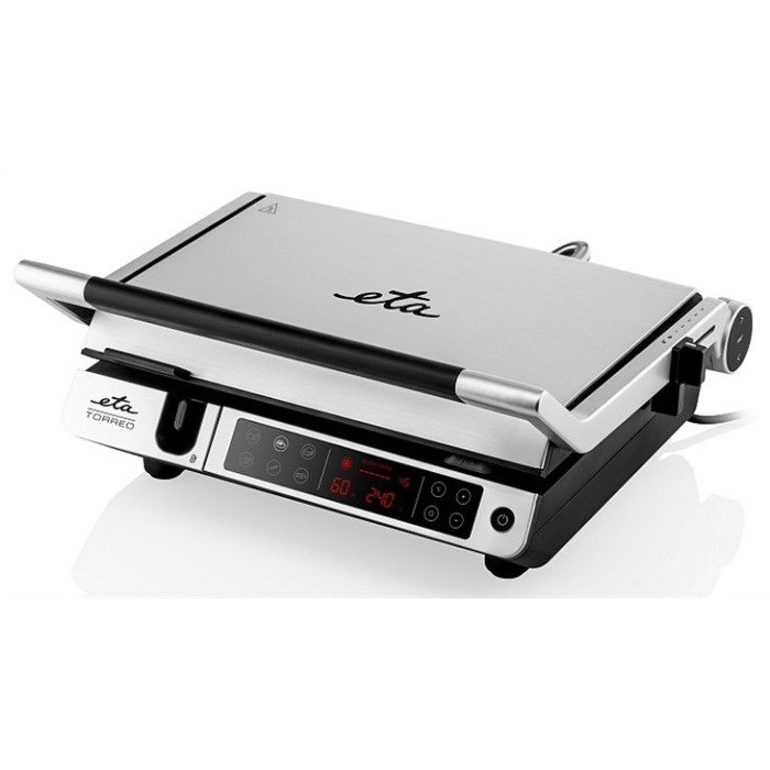PŘÍKON: 2000 W, Grilovací plochy 2x (34x4 cm), Vyjímatelné plotny, Integrované topné spirály, Regulace teploty 80 °C-240 °C, 3 provozní polohy, 5 úrovní nastavení výšky horní desky, LCD displej, 6 programů, Časovač, Teplotní sonda, Zvuková signalizace, AUTO - SHUT OFF, Odkapní nádoba-objem 0,2 l