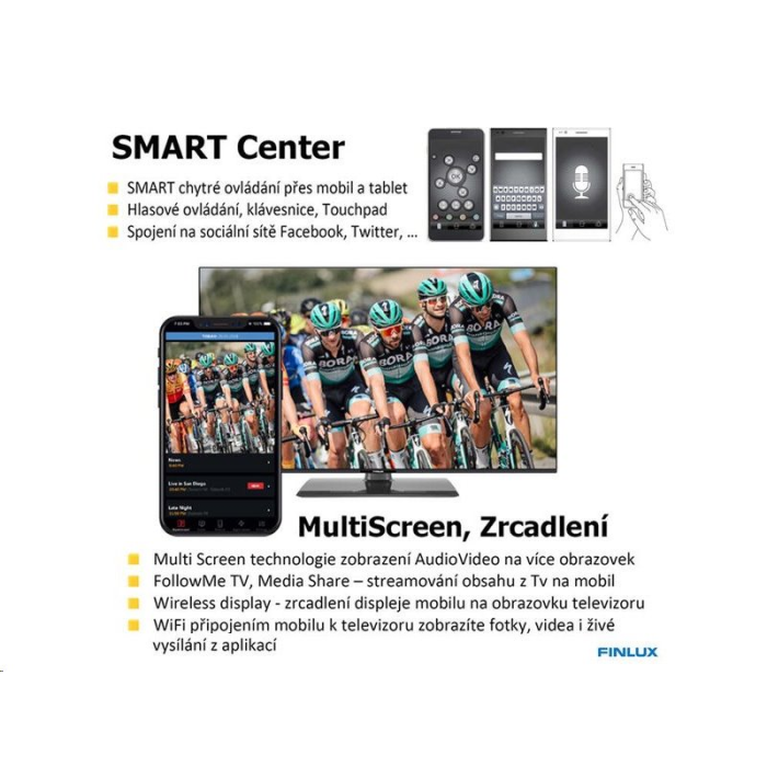 Ano, podporuje MultiScreen, Miracast i Wi-Fi připojení telefonu.