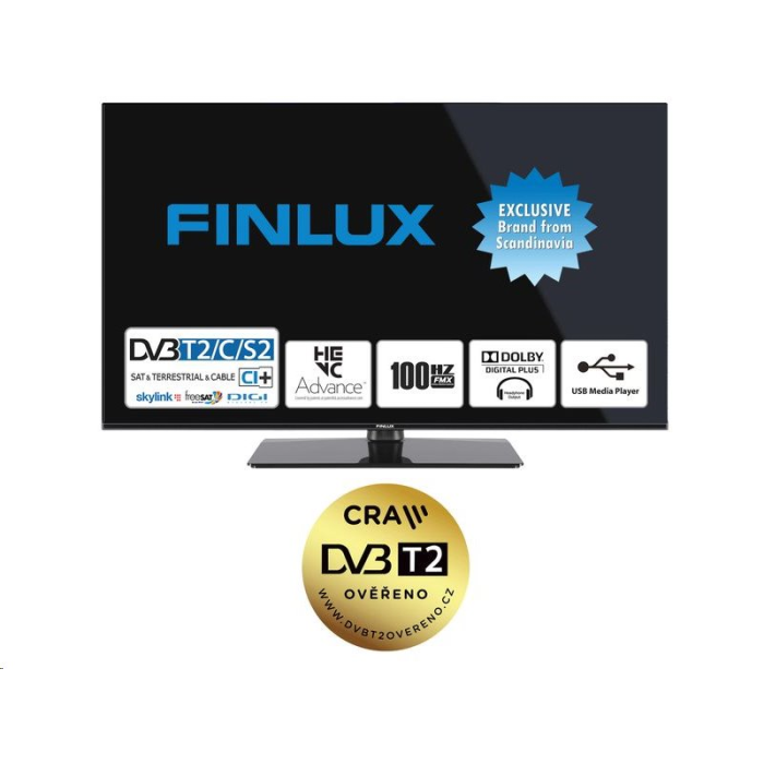 FINLUX 32FHG4660 HD TV s úhlopříčkou 32“ - 82cm, rozlišení 1366 x 768, USB PVR, Mediaplayer. Vybavený tunerem DVB-S2/T2/C a podporou kodeku H.265. 2x HDMI, 1x S/PDIF koaxiální audio, USB 2.0, CI+ rozhraní.