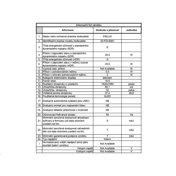 | Úhlopříčka | 32" (82 cm) | Velikost obrazovky měřená diagonálně. Ideální pro menší obývací pokoj, kuchyň nebo ložnici. |