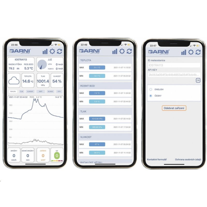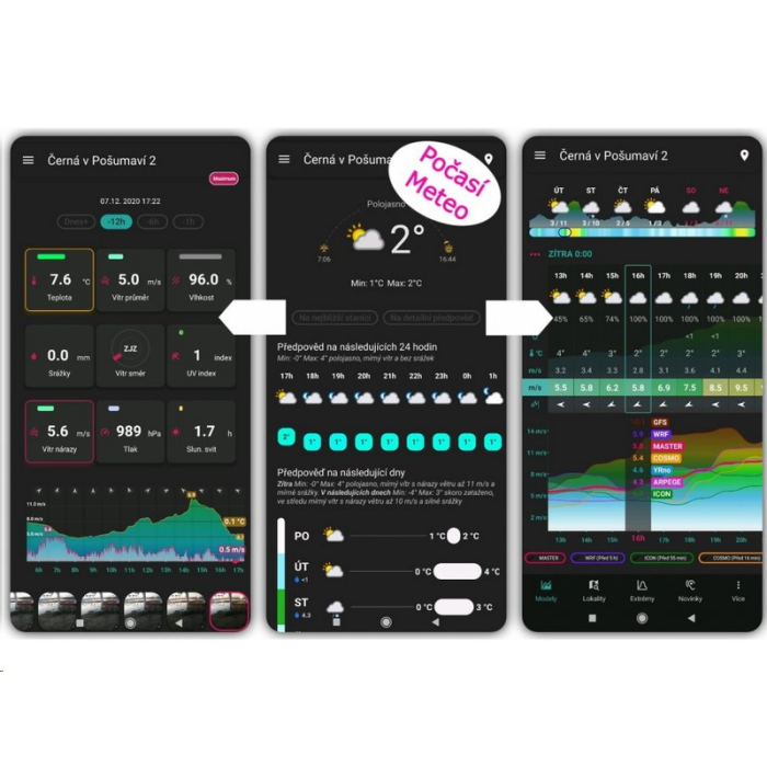 • Zobrazení dat v aplikaci - GARNI technology, Weather Underground, Počasí Meteo.