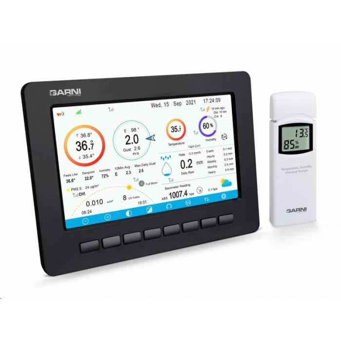 Tato meteorologická stanice je také kompatibilní s volitelnými bezdrátovými čidly, jako je 8 kanálové čidlo teploty a relativní vlhkosti GARNI 092H, venkovní čidlo PM2.5 pro měření kvality venkovního ovzduší GARNI 080Q a čidlo detekce blesků GARNI 094L. Dokoupi lze také síťový adaptér GARNI AD1 s kabelem dlouhým 20 m pro vyhřívání ultrazvukového anemometru.