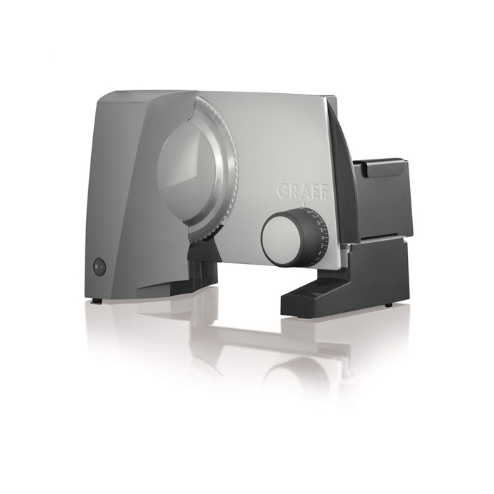 Zoubkovaný ocelový řezný kotouč o průměru 170 mm • kompaktní konstrukce, minimální nároky na místo při nejvyšší kapacitě krájení • vysoce stabilní provedení s opěrnou nohou • ochrana proti přetížení • držák krájených potravin s plastovou opěrkou • síla krájení 0-20 mm • dětská pojistka