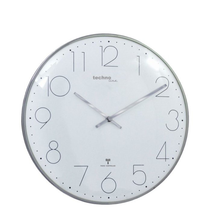 Hodiny nástěnné TechnoLine WT 8235 chrom, materiál plast s kovovým rámečkem, barva bílá/černá, průměr ciferníku 331 mm, napájení na 1 ks baterie typ AA 1,5 V.