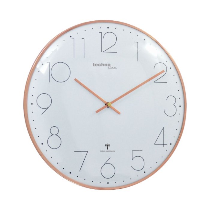 Hodiny nástěnné TechnoLine WT 8235 gold, materiál plast s kovovým rámečkem, barva bílá/černá/zlatá, průměr ciferníku 331 mm, napájení na 1 ks baterie typ AA 1,5 V.