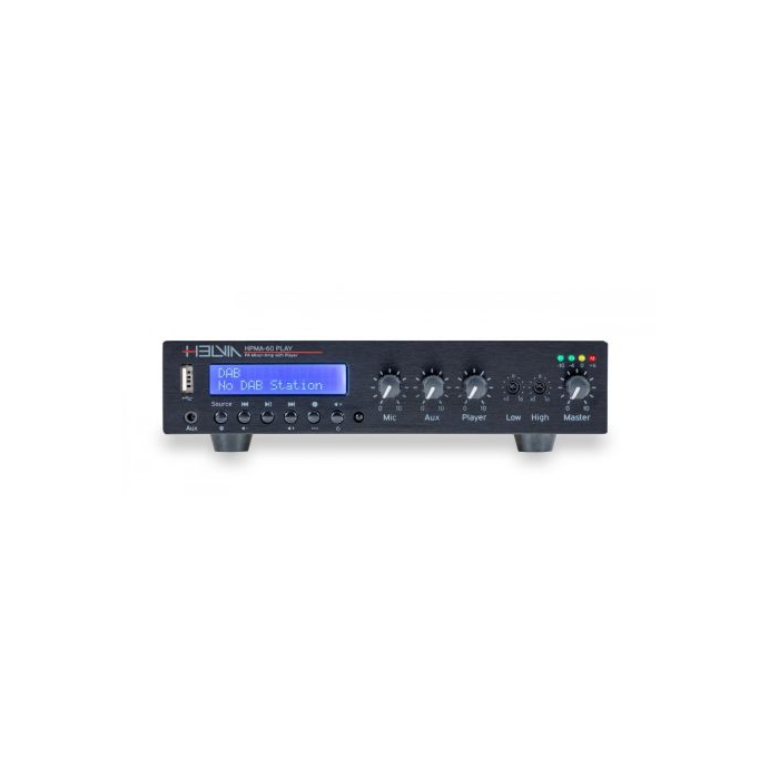 Sound system installations for commercial applications, while requiring more and more versatility and high performance in terms of power and sound pressure, have increasingly limited space. HELVIA is well aware of these requirements and offers a line of single-zone mixer-amplifiers in standard ½ 19" rack unit format with power ratings ranging from 30W to 240W, capable of operating on both 70V/100V and low impedance lines up to 2 ohms with maximum stability (2-ohm operation is provided only for 120W and 240W models; for 30W and 60W models the minimum limit is 4 ohms). The HPMA series - where "P" stands for Pocket - integrates a mixer with 1 Combo Mic/Line input with 48V Phantom, a front AUX input with stereo mini-jack plus a rear stereo AUX RCA input, and a Multimedia Player with DAB+ and FM tuner, USB player and BT; the level of each input is independently adjustable from the front panel. The Class-D amplifier modules integrate digital processing with limiter, overheat protection, fan control, DC-offset and in-current to ensure operation at any high impedance audio level down to a minimum of 2 ohms* in complete safety. HPMA-Play series amplifiers can be rack mounted with the optional HPMA R1-Kit mounting kit.
