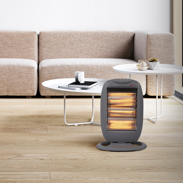 Infrazářič s výkonem 1200 W. Ohřívá objekty před sebou, nikoliv okolní vzduch.