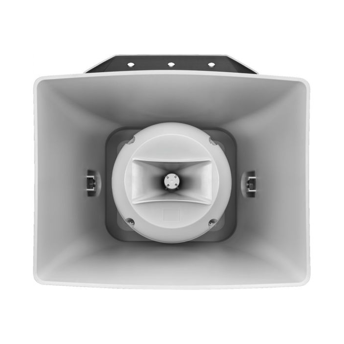 Active/passive: passive Transmission technology: 100 V Total power rating: 60 W Power rating (RMS): 60/30/15/7.5 W Frequency range: 100-20,000 Hz Number of speakers: 2 SPL: 101 dB/W/m Max. rated SPL: 116 dB Radiation angle/beam angle: H: 100°/V: 60° Radiation angle, horizontal: 100° Radiation angle, vertical: 60° Features: 2-way Housing material: ABS Colour: grey Mounting device: stainless steel mounting bracket Protection class: IP66 Admiss. ambient temp.: -20 °C to +50 °C Dimensions: 420 x 335 x 400 mm Width: 420 mm Height: 335 mm Depth: 400 mm Weight: 6.68 kg Inputs: screw terminals Other features: weatherproof Packaging dimensions (W x H x L): 0.36 x 0.46 x 0.44 m Gross weight: 7.84 kg Net weight: 6.68 kg