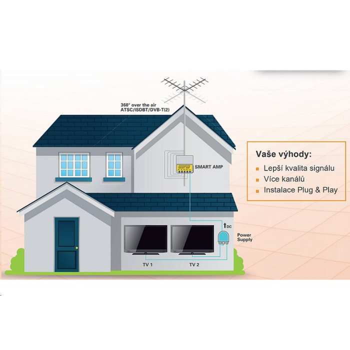 Inteligentní (smart) zesilovač skenuje všechny kanály, zesiluje slabé signály při zachování silných kanálů.
