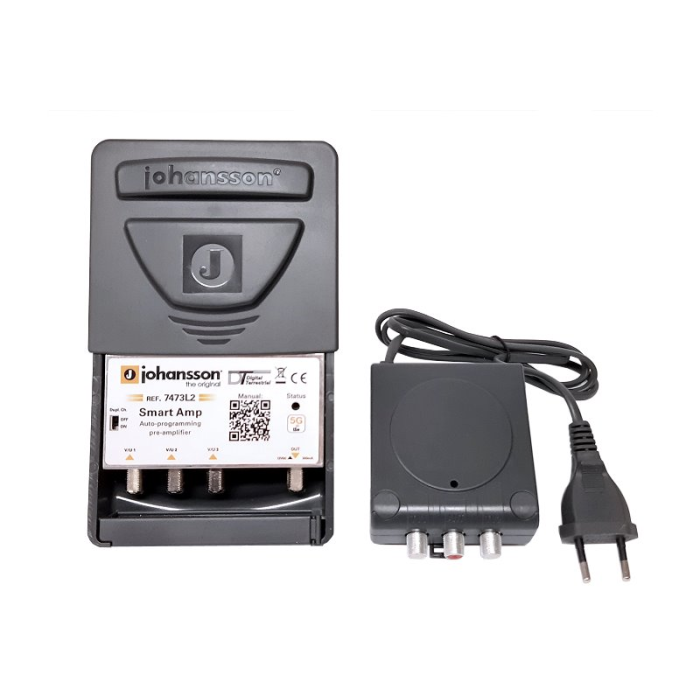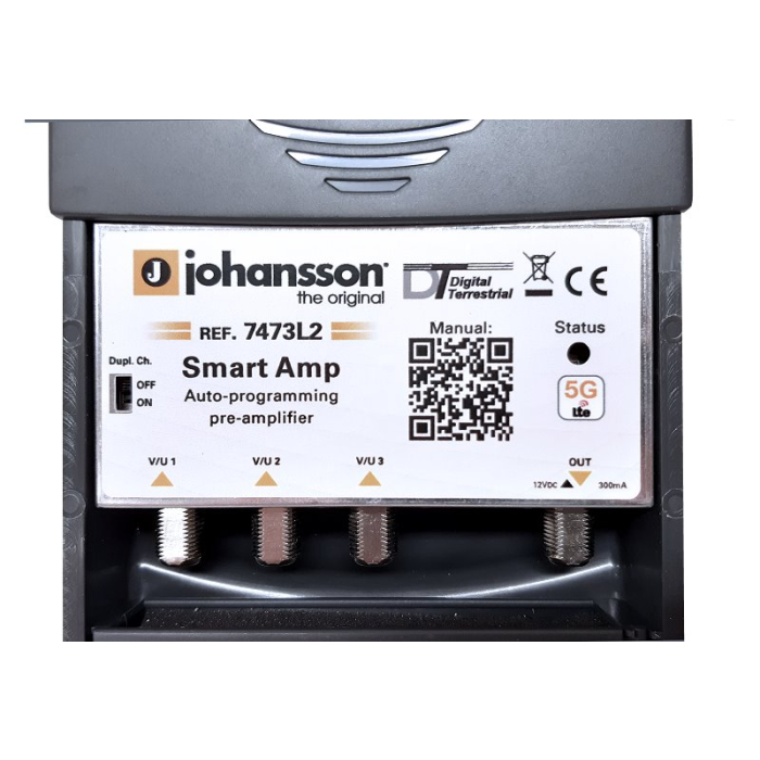 SMART 5G zesilovač pro DVB-T2/DAB+ vysílání určený pro malé rozvody (ITR) s odděleným 12V zdrojem + rozbočení na 2 větve. Připojíte antény (max. 3) a zesilovač jednotlivé kanály srovná na stejnou úroveň. Plug & Play instalace.