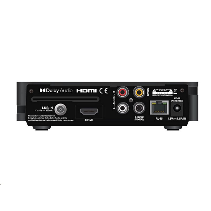 Skylink ready FULL HD přijímač s bezkartovým systémem Nagravision. FastScan, HDMI, USB, AV výstup cinch, S/PDIF koaxiální audio výstup. Podpora PVR nahrávání na externí disk.