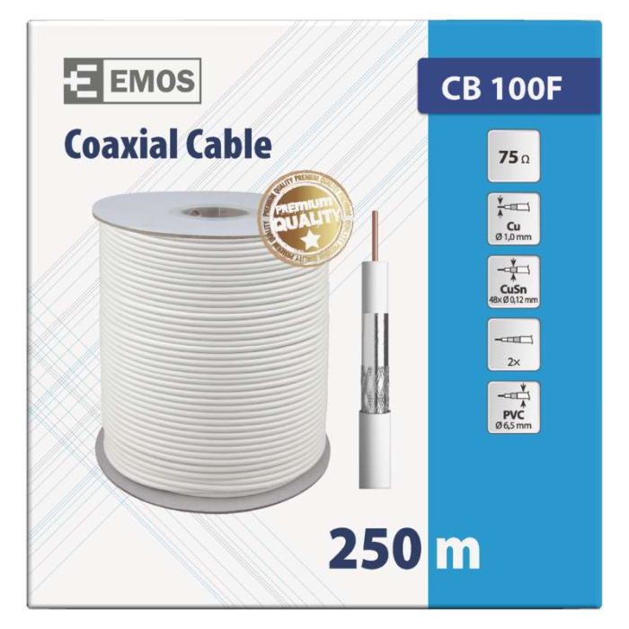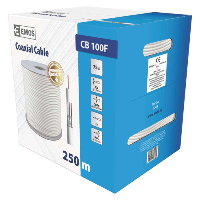 Koaxiální kabel Emos CB100F je navržen pro přenos těch nejkvalitnějších signálů, ať už se jedná o televizi, satelit nebo bezpečnostní systémy CCTV. S jeho středovým vodičem z čisté mědi (BC) a dvojnásobným stíněním z pocínované mědi (CuSn) získáte spolehlivý a silný přenos, který minimalizuje ztráty signálu a eliminuje rušení. Kabel je určen pro všechny náročné aplikace a díky své konstrukci nabízí dlouhodobou životnost i ve složitých podmínkách.