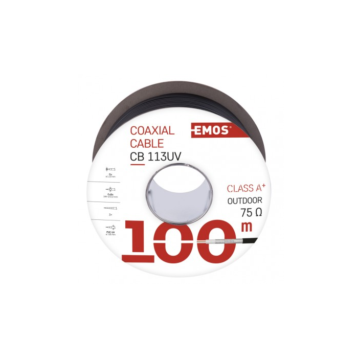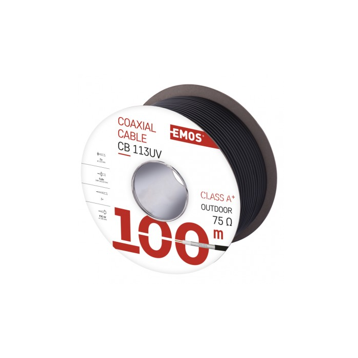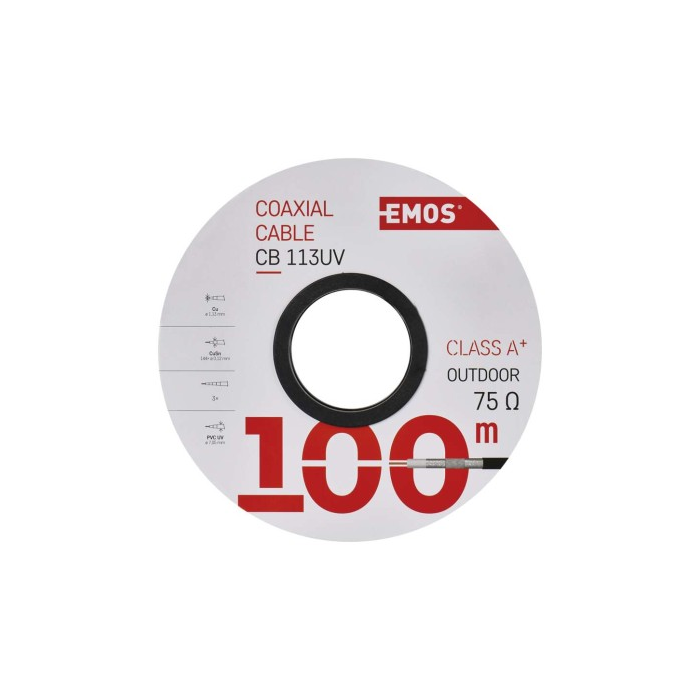 Koaxiální kabel Emos CB113UV je navržen tak, aby splnil ty nejvyšší nároky na přenos TV, SAT a CCTV signálů. Díky trojnásobnému stínění TRISHIELD z pocínované mědi (CuSn) a středovému vodiči z čisté mědi (BC) zajišťuje bezchybnou kvalitu přenosu signálu, minimalizuje ztráty a poskytuje mimořádnou spolehlivost i v náročných podmínkách.