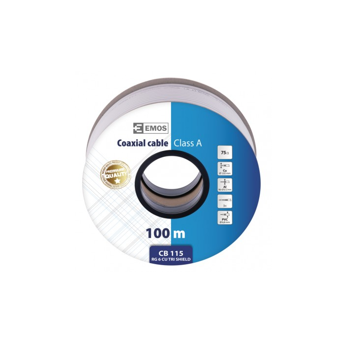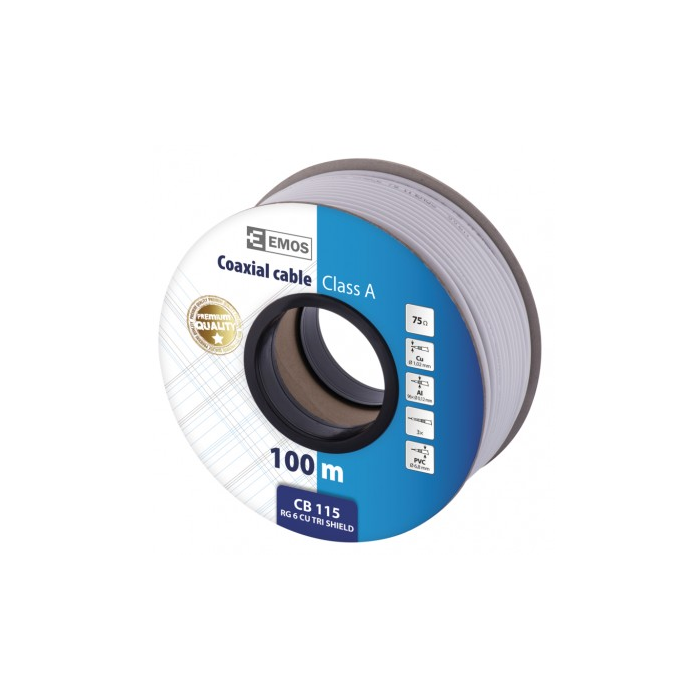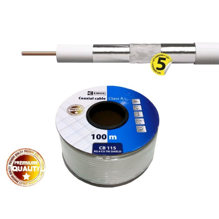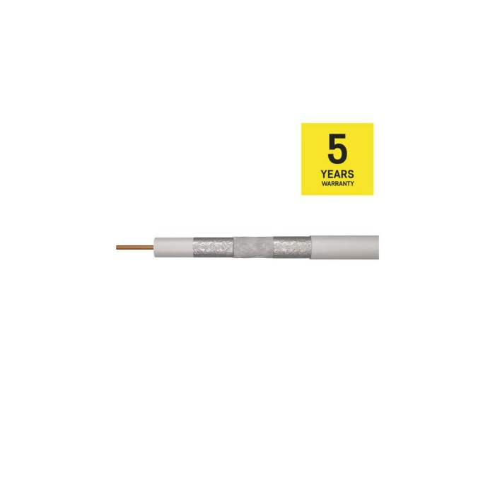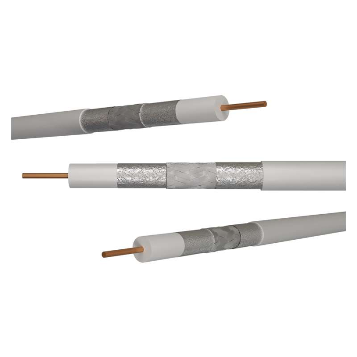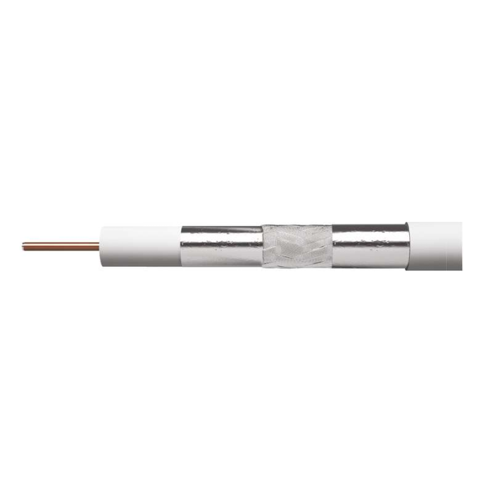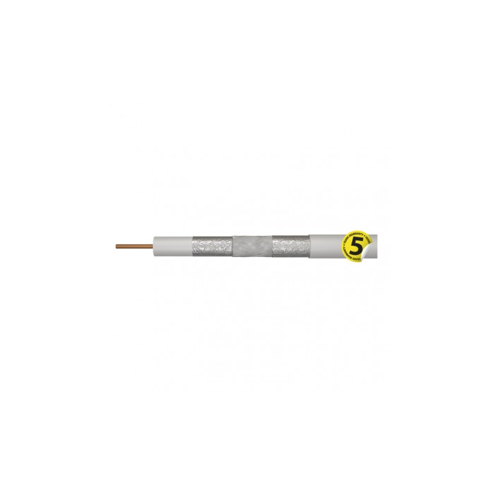 Koaxiální kabel typu RG6 vysoké kvality CLASS A se středovým vodičem z čisté mědi BC 1.02 mm a trojnásobným stíněním TRISHIELD v bílém provedení. Kabel je určen pro všechny náročné aplikace přenosů, TV a SAT signálů.