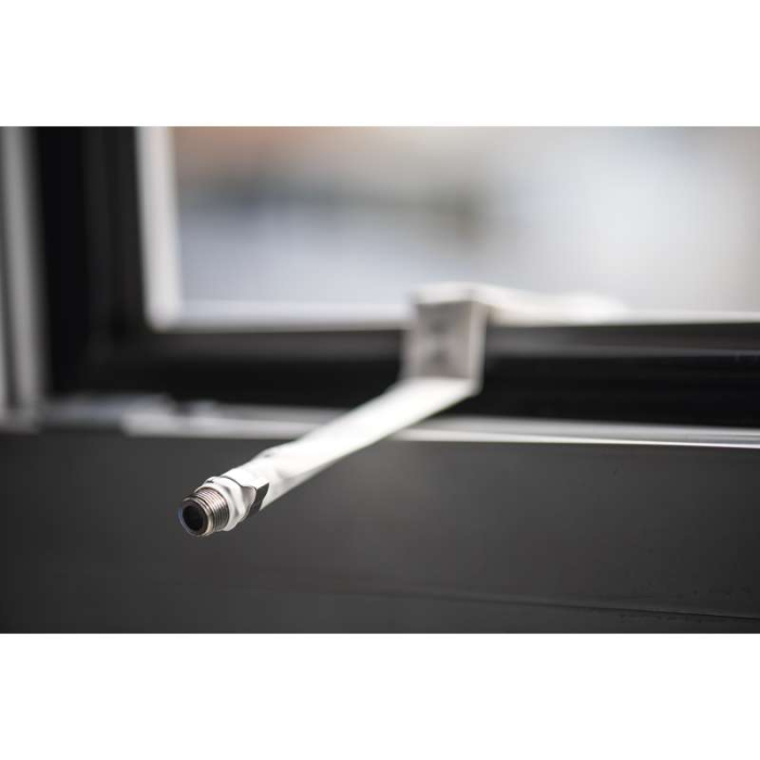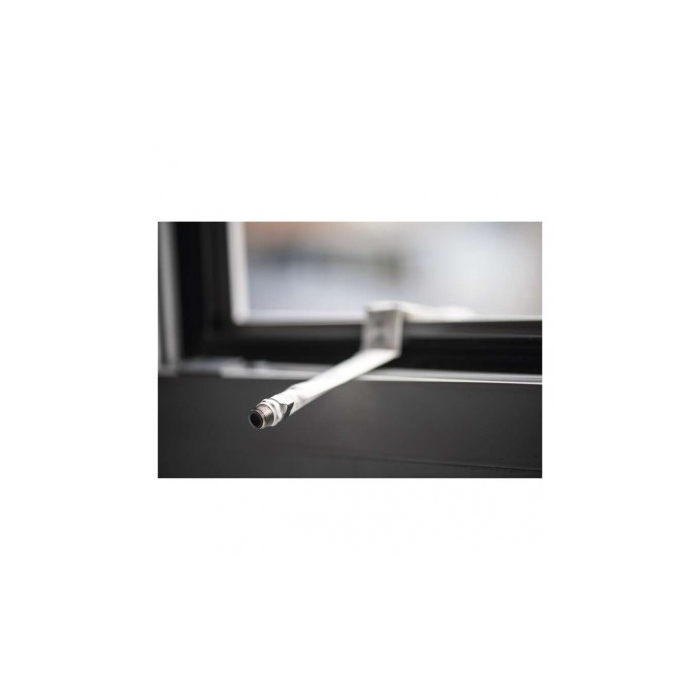 Koaxiální průchodka přes plastové okno. F konektory - F zásuvka - F zásuvka. Umožňuje montáž anténního svodu bez nutnosti vrtání okenního rámu. Kabel lze do okna přivřít bez poškození.