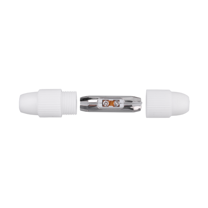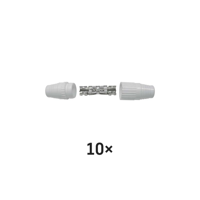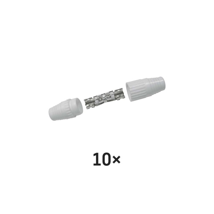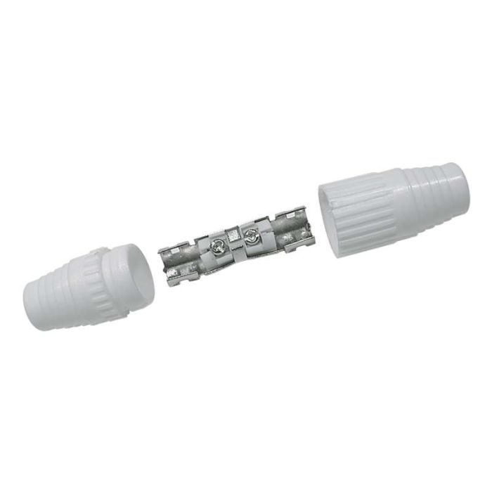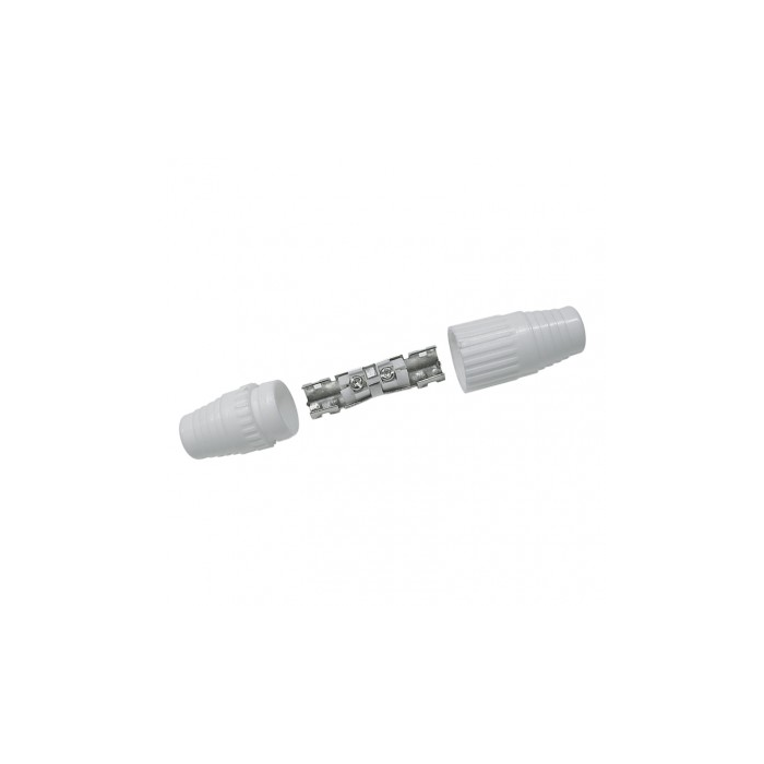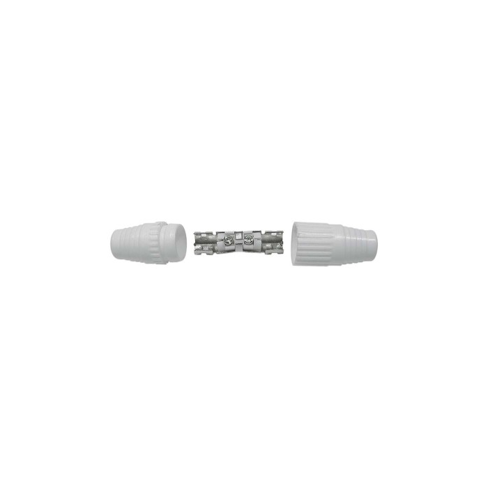 Přímá spojka pro koaxiální kabely, umožňuje pevné a kvalitní spojení bez nutnosti konektorů. Kovová konstrukce zajišťuje nízkou ztrátu signálu. Nutná montáž – správné upevnění vodičů je klíčové pro funkčnost.