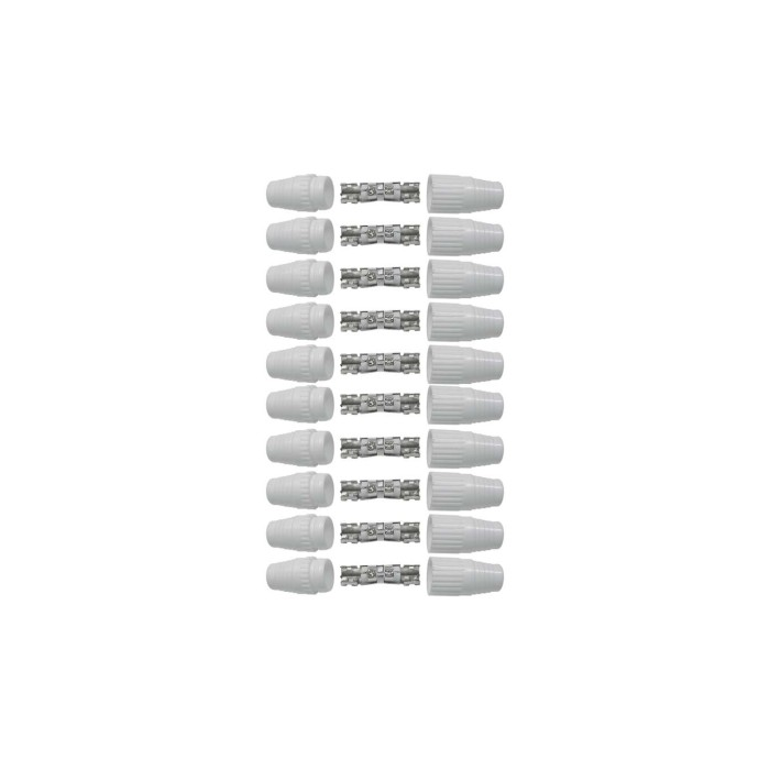 Tato anténní spojka umožňuje přímé spojení dvou koaxiálních kabelů. Na rozdíl od běžných adaptérů vyžaduje montáž, což znamená, že je nutné kabely připravit a upevnit je ke spojce.