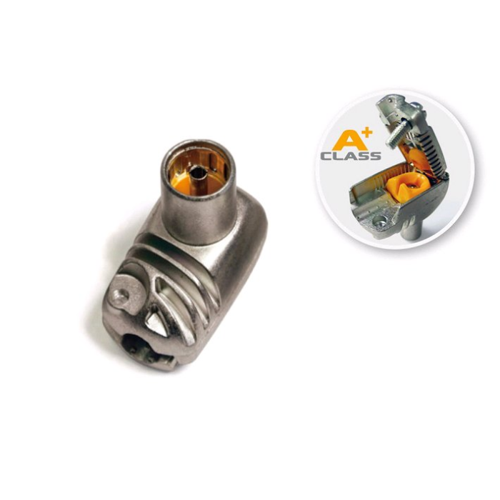 • Zoubkovaný vnitřní povrch zaručuje pevný kontakt konektoru s kabelovým opletením.