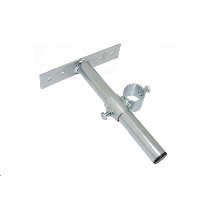Držák pro upevnění stožáru o průměru 48 mm s jedním zajišťovacím šroubem stožáru a jedním zajišťovacím šroubem pro zajištění vysouvané části s odsazením 10 až 250 mm od zdi či krovu a možností natočení.