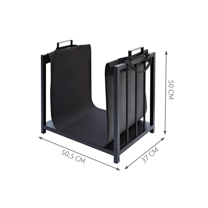 Luxusní kovový stojan na krbové dřevo s textilní taškou, rozměry 50 x 37 x 50 cm, hmotnost 4,85 kg