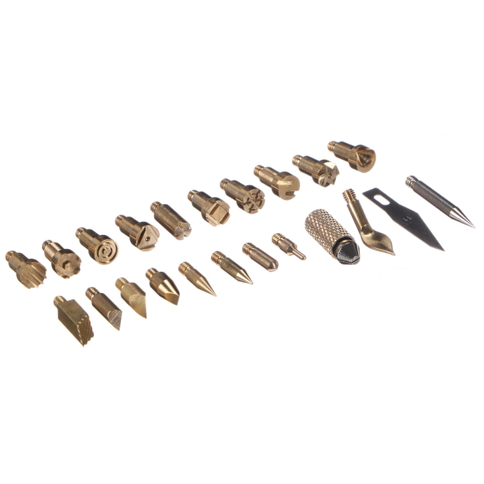 Toto pero je skvělým nástrojem pro pájení, řezání, ražení a vypalování obrázků a textů do různých materiálů, jako je dřevo, kůže, vosk, plast, textil nebo korek. Perfektně se hodí i pro menší pájecí práce, vyřezávání šablon nebo řezání fólií za horka.