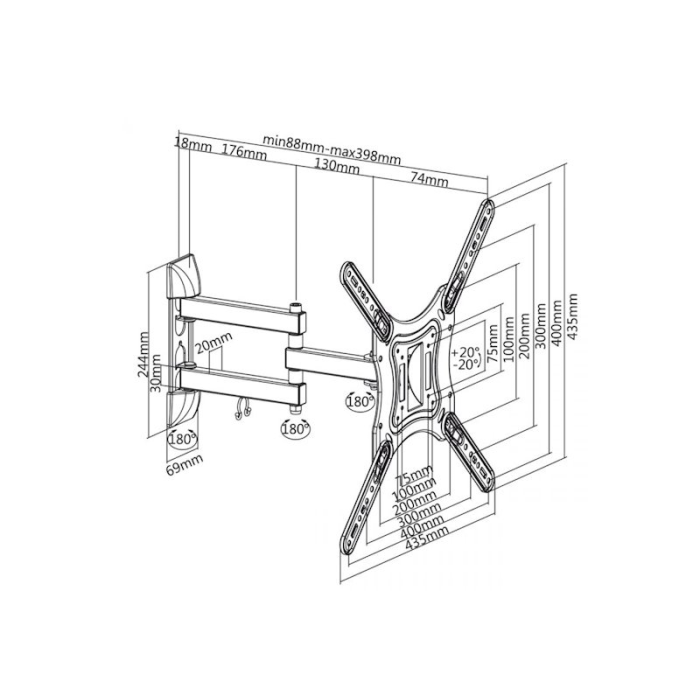 Plně polohovatelný držák pro televizory a monitory 23“ - 55“. Nosnost 30 kg.