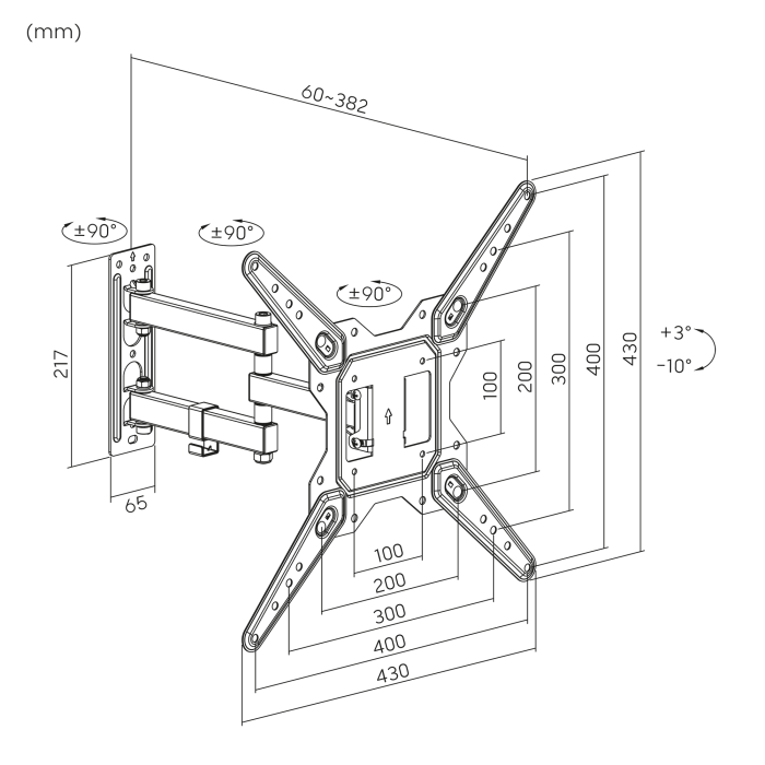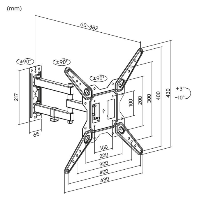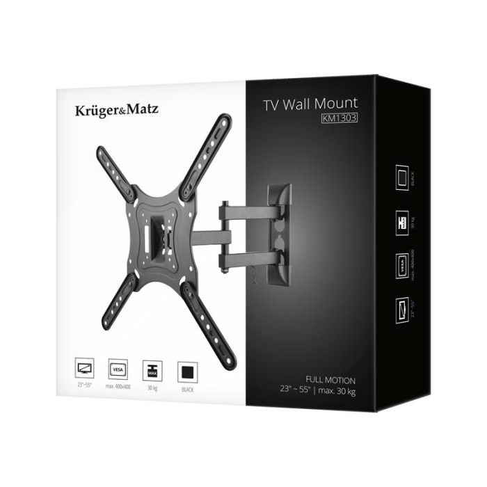Držák je určen pro televizory a monitory velikosti 23" - 55", má nosnost 30 kg. Rameno je vybaveno úchytem pro kabeláž.