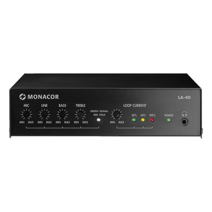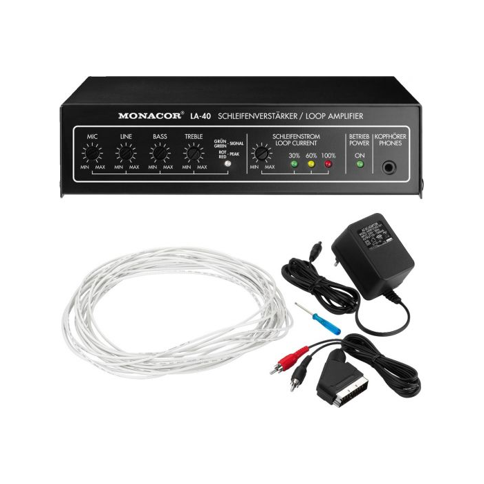 Loop zosilňovač LA-40 prenáša audio signály z TV, audio systému a/alebo mikrofónu do indukčnej slučky ktorá, je položená na podlahe, na stene alebo pozdĺž stropu. Takto sa v slučke vytvorí magnetické pole, ktoré prijíma T-cievka načúvacieho prístroja alebo induktívneho prijímača, a potom sa opäť prevádza na zvukový signál.