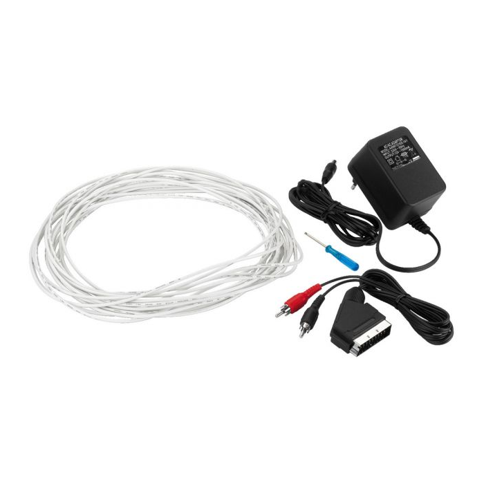 - Dodáva sa s 35 m slučkovým drôtom pre nastavenie indukčnej slučky, SCART Adaptérom, napájaním