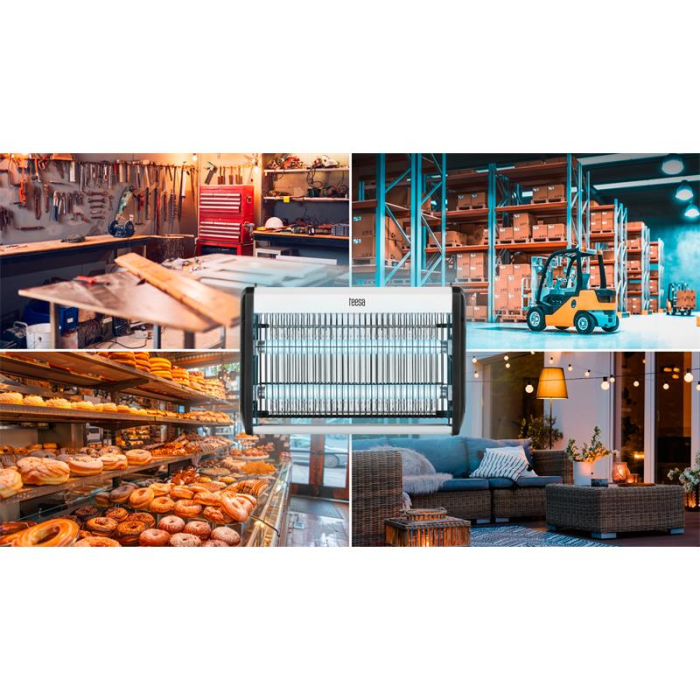Už vás omrzely mouchy, komáři a další otravný hmyz? UV lampu proti hmyzu Teesa určitě vyzkoušejte. Tento model byl navržen s ohledem na nejvyšší efektivitu a je určen pro místnosti s velkou plochou - až 80 m2, proto se skvěle hodí do skladů, obchodů a dílen.