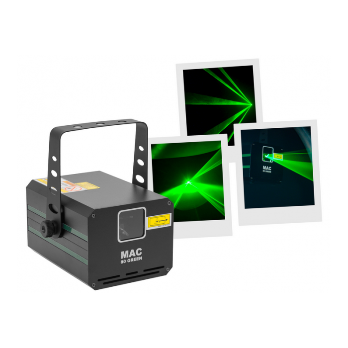 Green animation LASER, 80 mW power, automatic, DMX and musical modes.