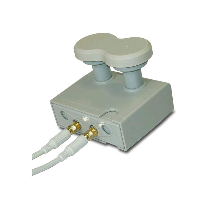 Monoblock twin se šumovým číslem 0,1 dB. Určený pro 2 účastníky a příjem dvou družic Astra 1 a Astra 3. LNB má zlacené konektory a plastový kryt s uzávěrem.